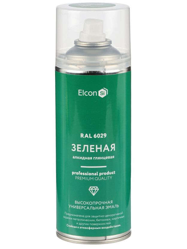 Эмаль аэрозольная, Elcon, универсальная, алкидная, глянцевая, зеленая, RAL 6029, 520 мл