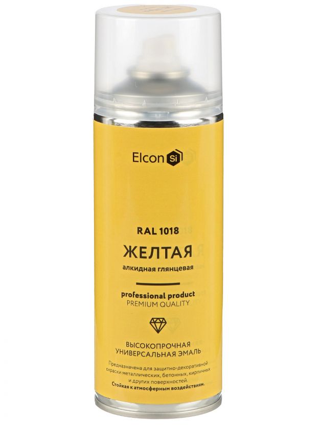Эмаль аэрозольная, Elcon, универсальная, алкидная, глянцевая, желтая, RAL 1018, 520 мл