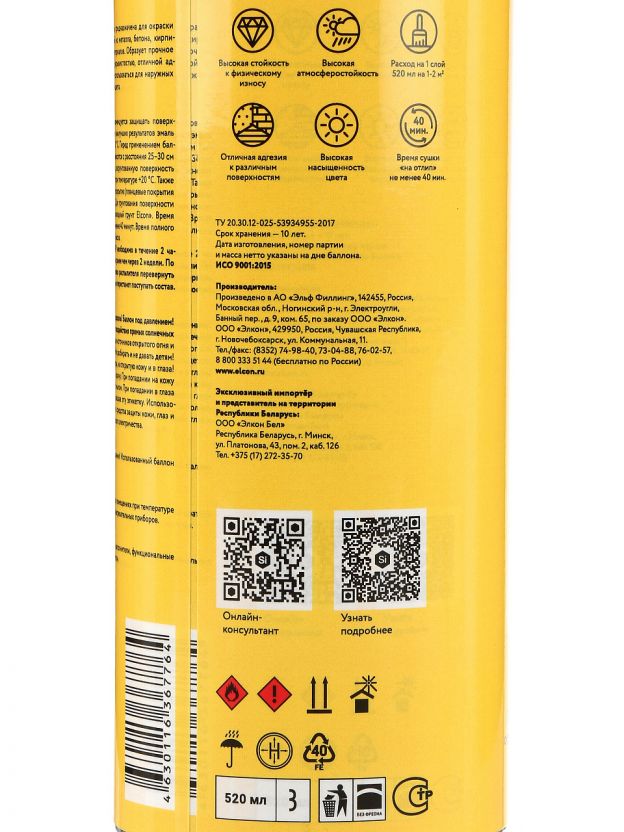 Закажите аэрозольную эмаль Elcon RAL 1018 прямо сейчас — яркий цвет, надежная защита и выгодная цена для любых задач. Гарантия оригинальности и быстрая доставка по России.