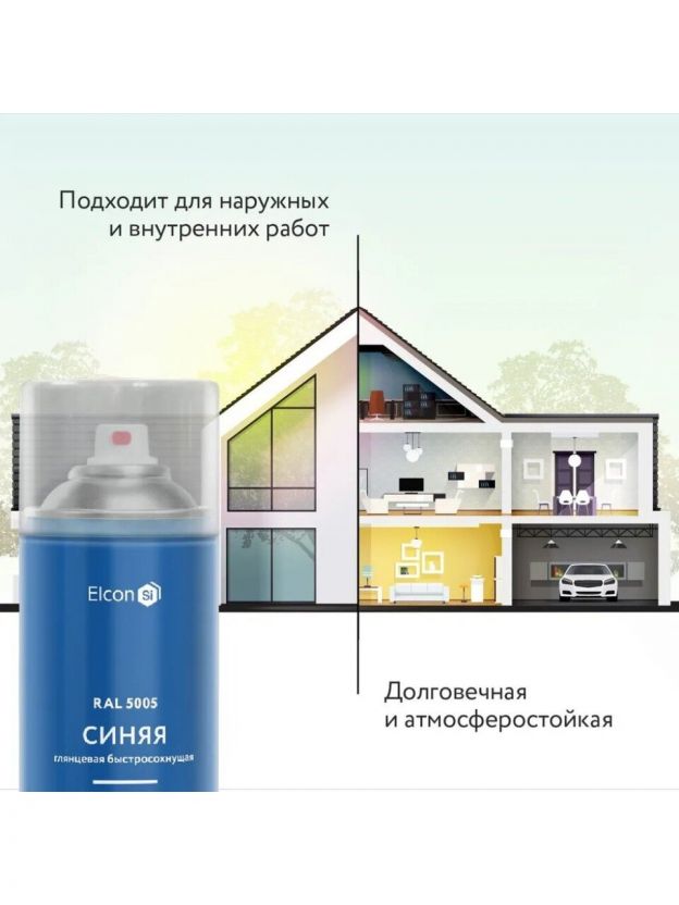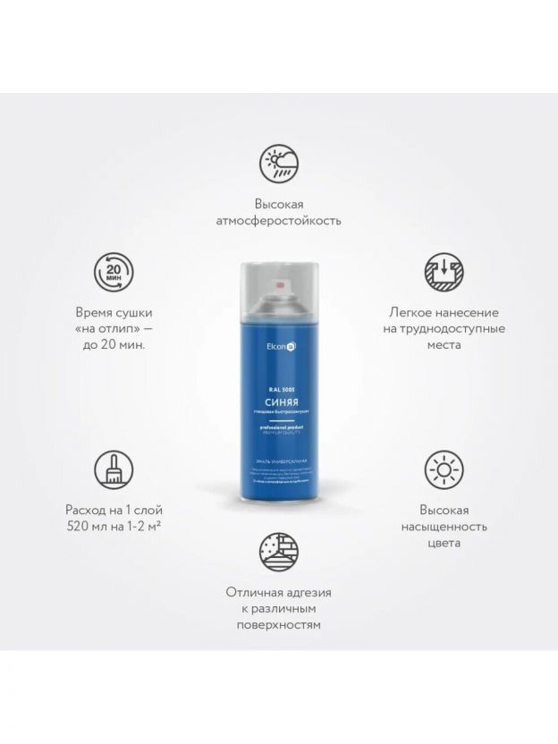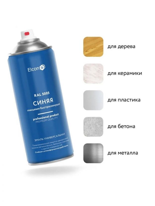Эмаль аэрозольная, Elcon, универсальная, быстросохнущая, акриловая, глянцевая, синяя, RAL 5005, 520 мл
