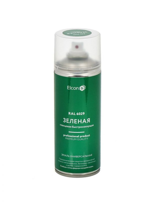 Эмаль аэрозольная, Elcon, универсальная, быстросохнущая, акриловая, глянцевая, зеленая, RAL 6029, 520 мл