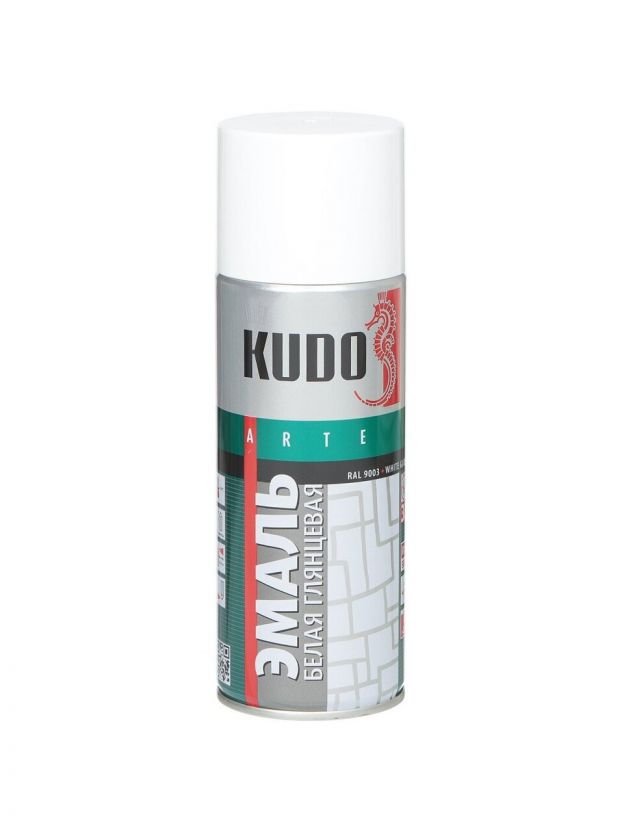Эмаль аэрозольная, KUDO, универсальная, алкидная, глянцевая, белая, 520 мл, KU-1001