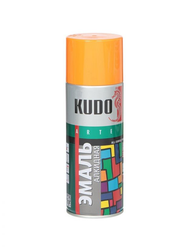 Эмаль аэрозольная, KUDO, универсальная, алкидная, глянцевая, оранжевая, 520 мл, KU-1019