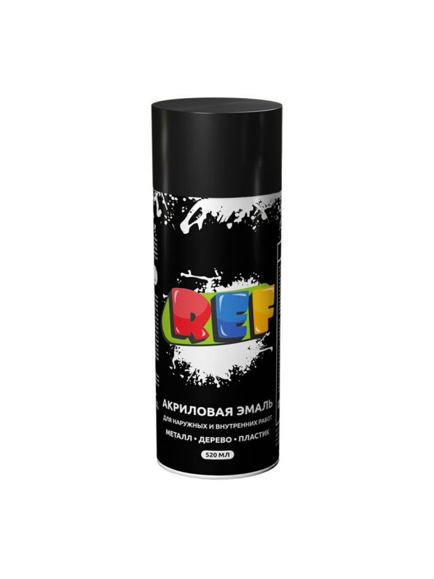 Эмаль аэрозольная, REF, универсальная, акриловая, глянцевая, черная, 520 мл