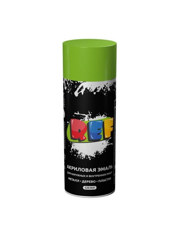 Эмаль аэрозольная, REF, универсальная, акриловая, глянцевая, светло-зеленая, 520 мл