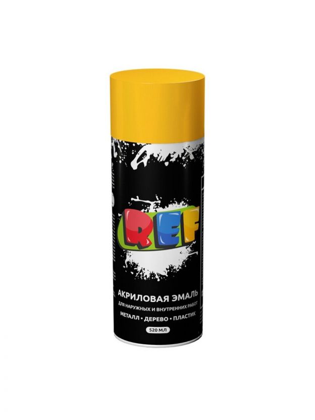 Эмаль аэрозольная, REF, универсальная, акриловая, глянцевая, желтая, 520 мл