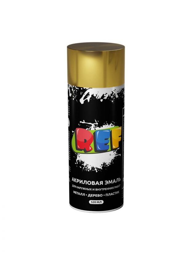 Эмаль аэрозольная, REF, универсальная, акриловая, глянцевая, золотая, 520 мл