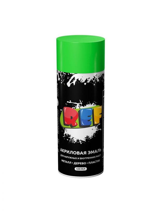 Эмаль аэрозольная, REF, универсальная, флуоресцентная, акриловая, зеленая, 520 мл