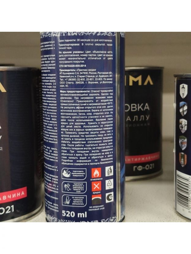 - Состав: модифицированная алкидная смола, пигменты, смесь органических растворителей, смесь углеводородных газов, функциональные добавки.