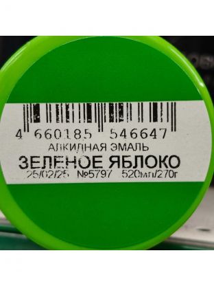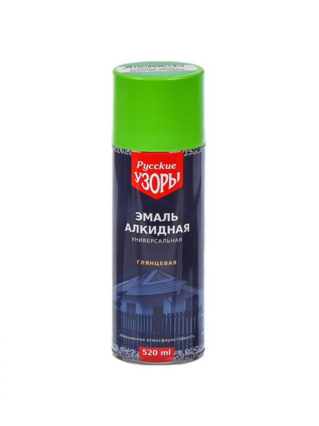 Эмаль аэрозольная, Русские узоры, универсальная, алкидная, глянцевая, зеленое яблоко, 520 мл