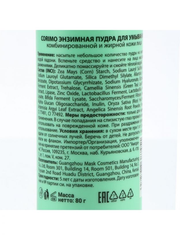 Энзимная пудра Corimo для умывания — глубокое очищение жирной и комбинированной кожи без пересушивания, 80 г. Эффективный уход и свежесть каждый день.