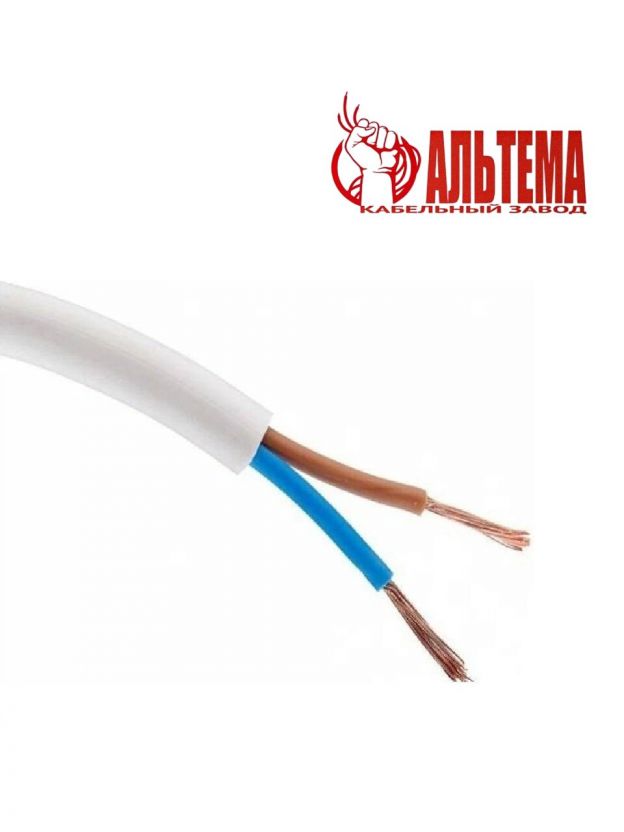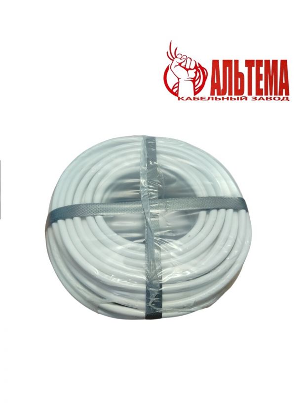 Кабель ПВС, 2 жилы по 1.5 мм2, длина 20 метров, материал жилы — медь, гибкий, белая изоляция, соответствует ГОСТ, артикул А000250, бренд Альтема.