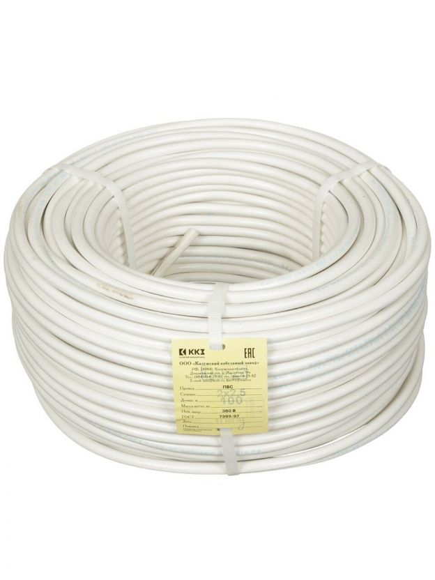 Кабель ПВС, 2х2.5 мм2, 100 м, медь, гибкий, ГОСТ, белый, ККЗ, 00-00000914