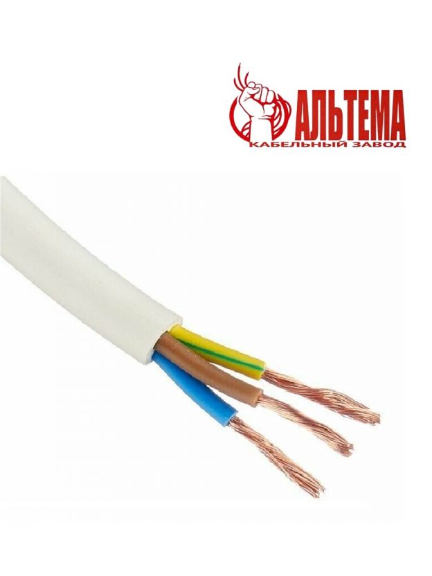 Три медные жилы сечением 0.75 мм2, длина 5 метров, гибкая ПВХ-изоляция белого цвета, соответствует ГОСТ, артикул А000439, бренд Альтема.