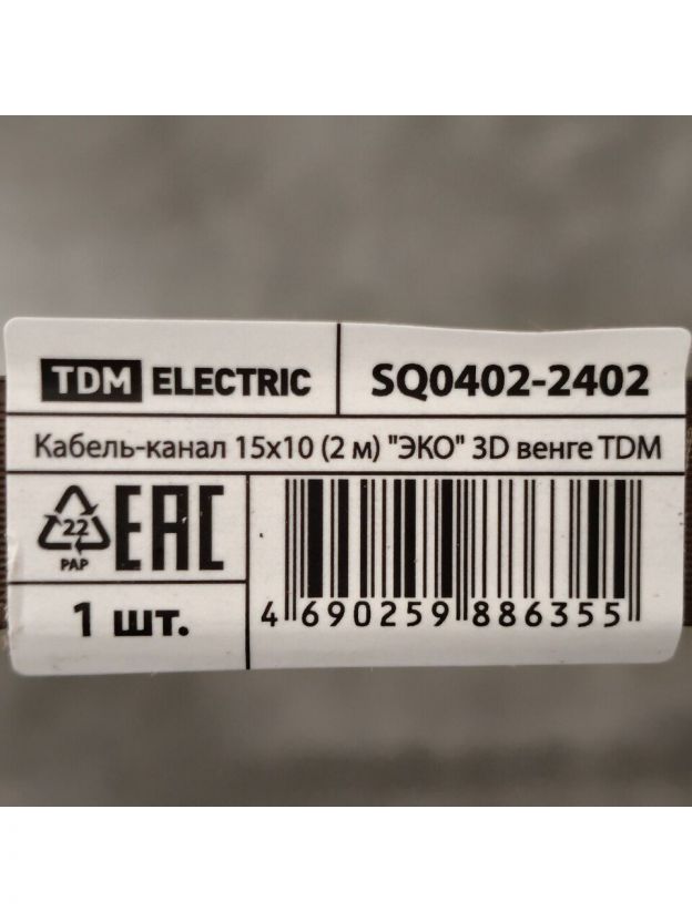 Кабель-канал пластик, 15х10 мм, 2 м, венге, TDM Electric, 3D, ЭКО, SQ0402-2402