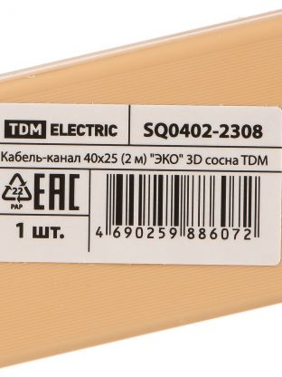 Кабель-канал пластик, 40х25 мм, 2 м, сосна, TDM Electric, 3D, ЭКО, SQ0402-2308