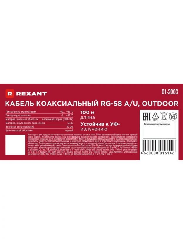 Использование коаксиального провода RG-58 A/U от Rexant позволит создать надежную и стабильную систему передачи сигнала, обеспечивая безопасность, комфорт и высокое качество связи в доме или на даче. Выгода от покупки заключается в уверенности в бесперебойной работе оборудования, экономии времени и средств на обслуживание, а также в долгосрочной защите инвестиций в домашнюю инфраструктуру.