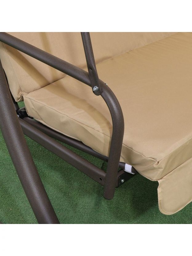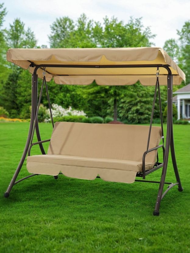 Качели садовые 3-местные, 190х120х165 см, 300 кг, Green Days, раскладываются в кровать, бежевые, YTGSW017-YTGSW012, с крышей, металл