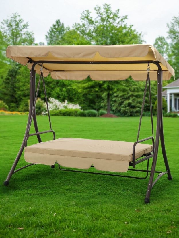 - стильный дизайн: бежевый цвет и современный внешний вид делают качели гармоничным дополнением любого садового интерьера;