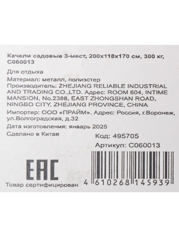 Качели садовые 3-мест, 200х118х170 см, 300 кг, Удача, бел, C060013 станут отличным выбором для создания уюта и комфорта на даче, в саду или на террасе. Просторная конструкция рассчитана на трех человек, что позволяет наслаждаться отдыхом в компании близких или друзей. Универсальный белый цвет гармонично впишется в любой ландшафт, подчеркивая аккуратность и стильность участка. Прочные материалы и продуманная конструкция обеспечивают надежность и долговечность, а максимальная нагрузка до 300 кг гарантирует устойчивость и безопасность для всей семьи.
