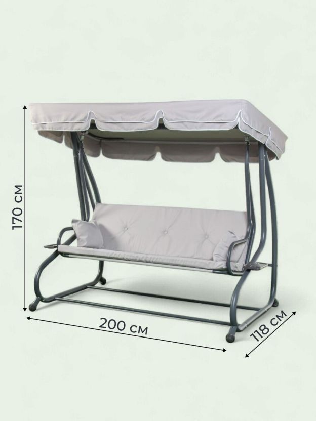 Качели садовые 3-местные, 200х118х170 см, 300 кг, раскладываются в кровать, с москитной сеткой, подушка, C060013, металл