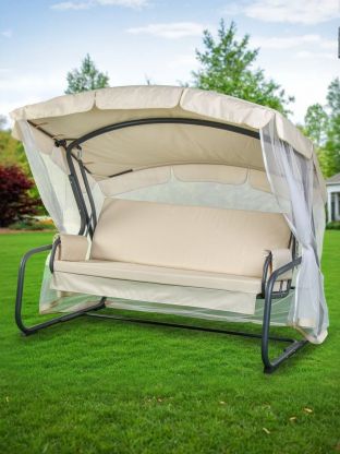 Качели садовые 3-местные, 209.5х127х165 см, 300 кг, Генуя, раскладываются в кровать, с москитной сеткой, антрацит, A45A.T025, металл