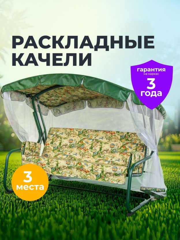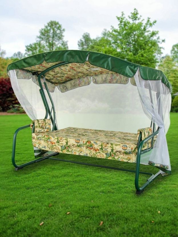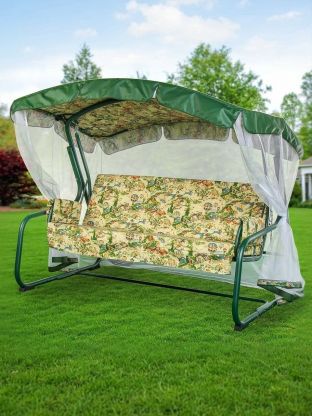 Качели садовые 3-местные, 209.5х127х165 см, 300 кг, Генуя, раскладываются в кровать, с москитной сеткой, зеленые, A45G.Т325, металл