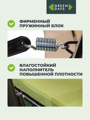 Откройте для себя непревзойденный комфорт и стиль с садовыми качелями Green Days, которые станут идеальным дополнением для вашего сада или дачного участка. Эти трехместные качели, выполненные в элегантном зеленом цвете, не только украсят ваш участок, но и подарят незабываемые моменты отдыха на свежем воздухе.
