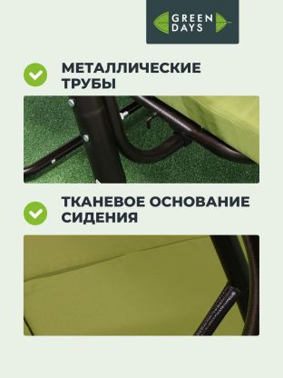 Покупая эти качели, вы получаете не просто функциональный элемент сада, но и возможность наслаждаться каждой минутой отдыха на свежем воздухе. Забудьте о суете и насладитесь гармонией природы вместе с Green Days!