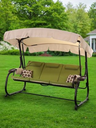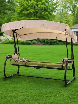 Качели садовые 3-местные, 220х130х177 см, 280 кг, Green Days, раскладываются в кровать, зеленые, YTSW3045-5S, металл