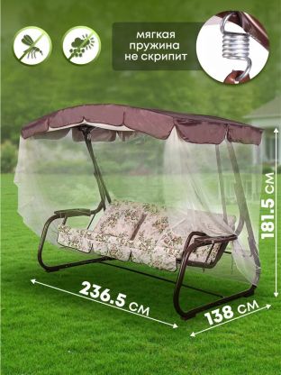 Качели садовые 3-местные, 236.5х138х181.5 см, 280 кг, Куба, раскладываются в кровать, с москитной сеткой, с 1281, сталь