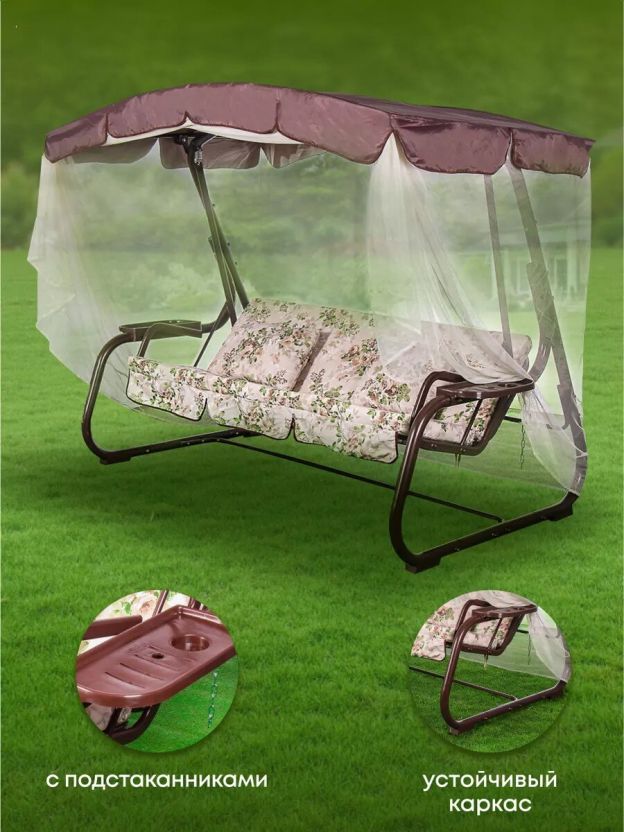 Приобретая эти садовые качели, вы получаете не только функциональную мебель для отдыха, но и элемент декора, который подчеркнет стиль вашего сада. Прочная стальная рама с диаметром трубы 51 мм гарантирует долговечность и устойчивость конструкции. Отдых на природе станет еще приятнее благодаря возможности быстро и легко трансформировать качели в кровать, а москитная сетка позволит наслаждаться природой без беспокойства о насекомых.