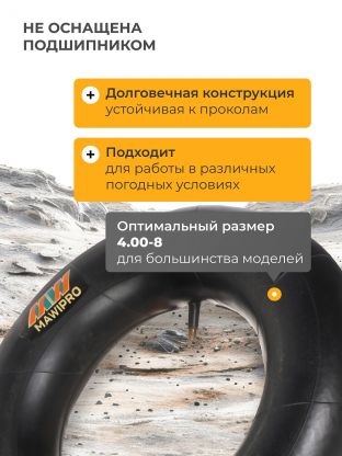 Камера для колеса к тачке 4.00-8 Mawipro MW-756 – надежное решение для замены изношенной камеры в садовой или строительной тачке. Универсальный размер 4.00-8 подходит для большинства популярных моделей. Продукт изготовлен из прочных материалов, что обеспечивает долгий срок службы и устойчивость к проколам. Идеальный выбор для тех, кто ценит комфорт и эффективность при работе на участке или стройке.