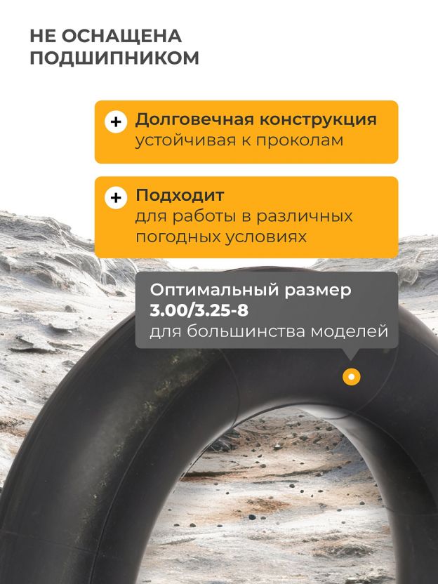 Камера для колеса к тачке Mawipro MW760 — надежное решение для замены и ремонта пневматических шин садовых и строительных тачек. Прочный материал обеспечивает долгий срок службы даже при интенсивной эксплуатации. Размер 3.00/3.25-8 подходит к распространённым моделям тачек, а оптимальное качество резины гарантирует устойчивость к проколам и повреждениям.