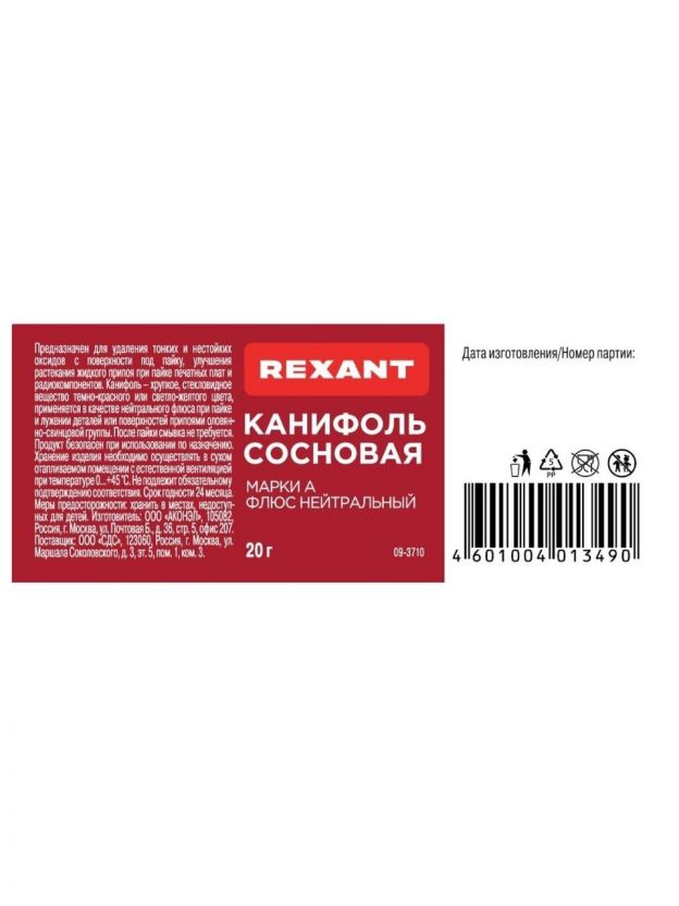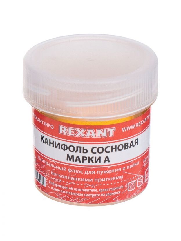 Канифоль сосновая Rexant Марка А — надежное решение для пайки и бытовых нужд. Удобная упаковка-банка, вес 20 г, компактность и простота применения делают продукт востребованным среди покупателей товаров для дома и дачи.