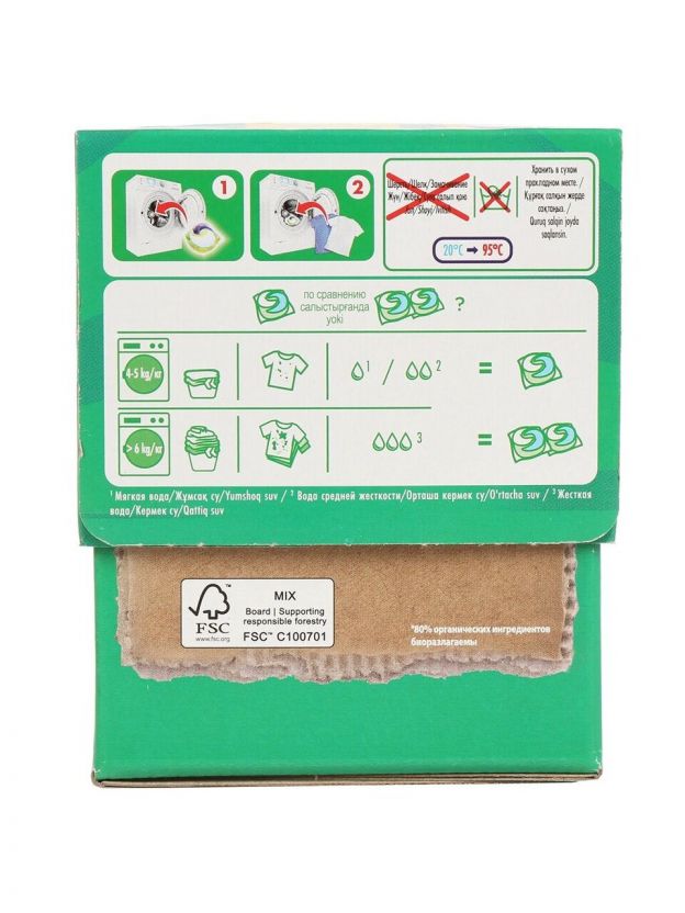 Обратите внимание, что капсулы для стирки являются концентрированными, поэтому одной капсулы достаточно для полноценного цикла стирки. Это означает, что вам не придётся беспокоиться о дозировке средства, что особенно удобно при большой загрузке белья.