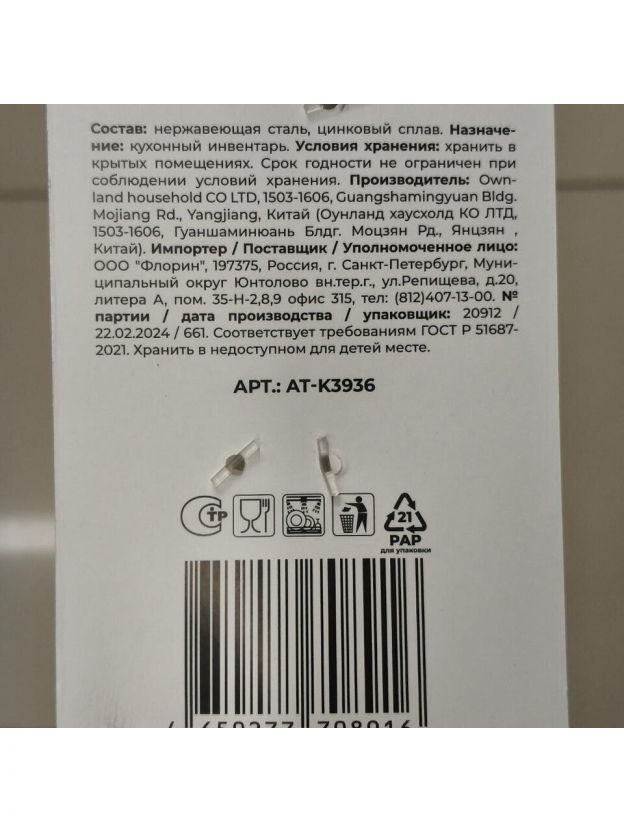 Картофелечистка нержавеющая сталь, Atmosphere, Soprano, AT-K3936