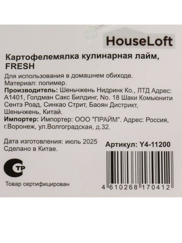 Картофелемялка кулинарная, нейлон, 25х10х7.5 см, навеска, лайм, HouseLoft, Fresh, Y4-11200