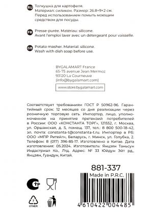 Картофелемялка силикон, 26.8х9х2 см, навеска, Satoshi, Ривьера, 881-337