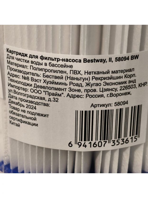 Картридж для фильтр-насоса 58117, 58148, 58383, 58386, Bestway, II, 58094 BW