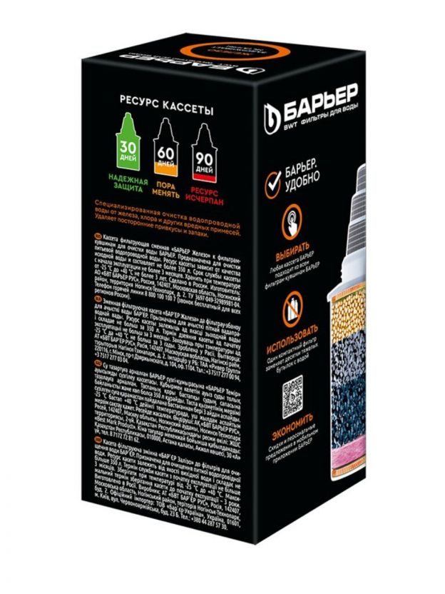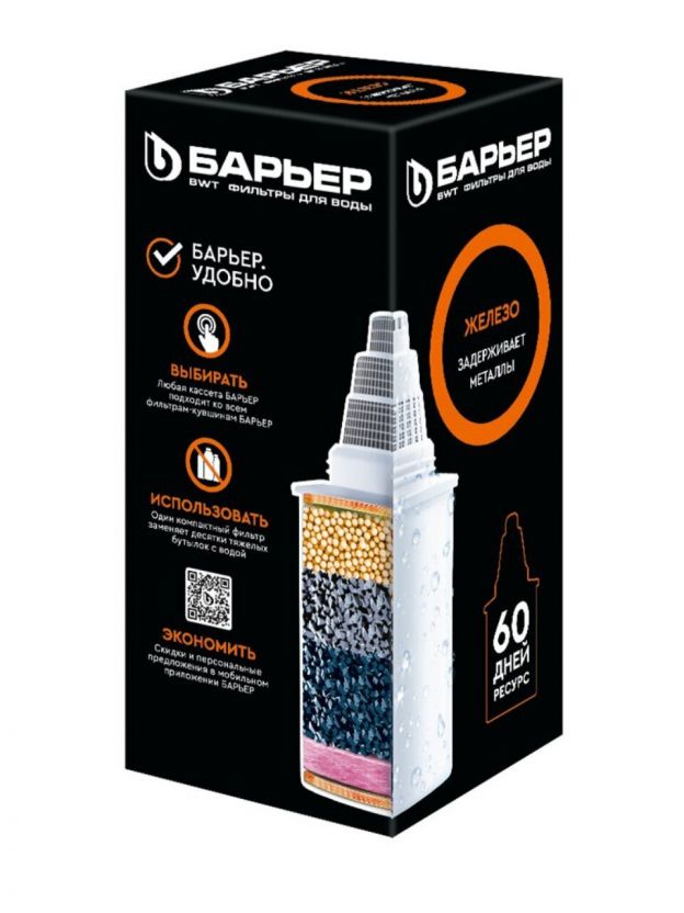 Кассеты «Железо» для фильтров-кувшинов призваны удалить вредные примеси и запах хлора. Ионообменные смола и волокно, входящие в состав изделий, освобождают воду от тяжелых металлов и железа, в том числе растворенного.