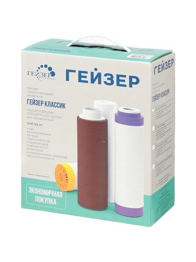 Комплект картриджей Гейзер К-1 предназначен для замены исчерпавших свой ресурс картриджей в стационарных трехступенчатых фильтрах для жесткой воды.