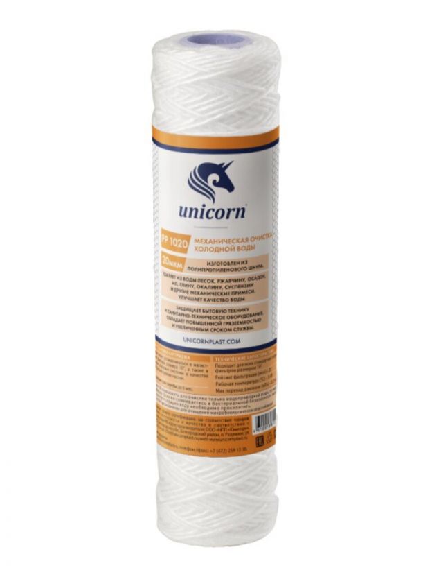 Картридж сменный Unicorn, РР 1020, 20 мкм, полипропиленовый шнур