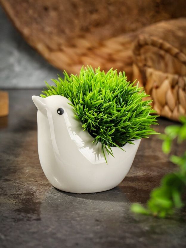 Кашпо керамика, 0.193 л, 13.4х7.8х10 см, белое, Птичка, Y4-8790