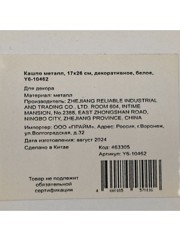 Кашпо металл, 17х26 см, декоративное, белое, Y6-10462/A040019