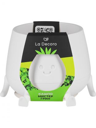Кашпо пластик, 0.6 л, 11.1х11.1х8.8 см, универсальное, белое, La Decoro, Мистер Грин, КШ-1842