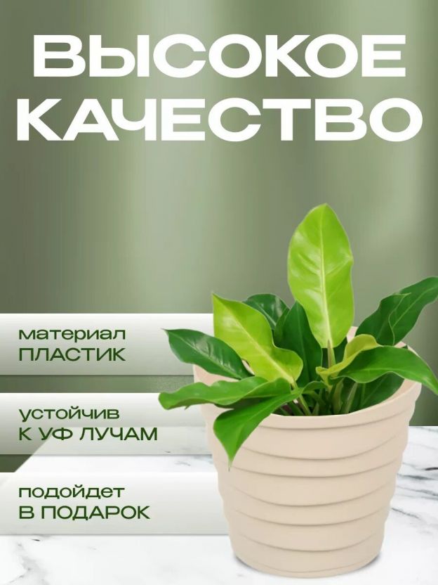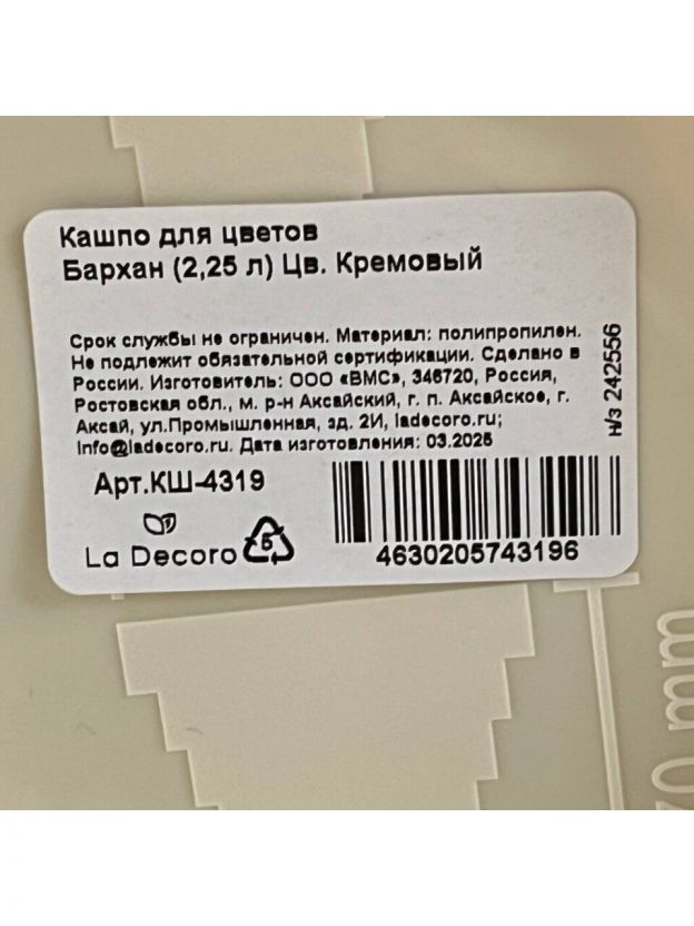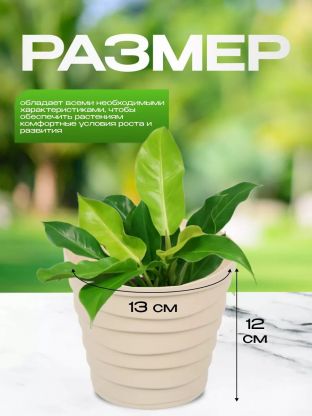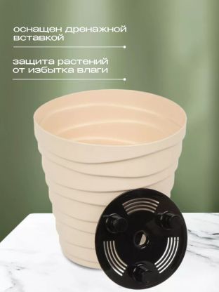 Кашпо пластик, 0.9 л, универсальное, кремовое, La Decoro, Бархан, КШ-4315