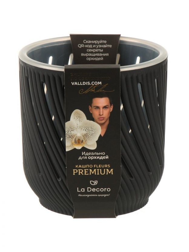 Кашпо пластик, 1.3 л, 12.5х13.2 см, антрацит, La Decoro, Fleurs, КШ-3676