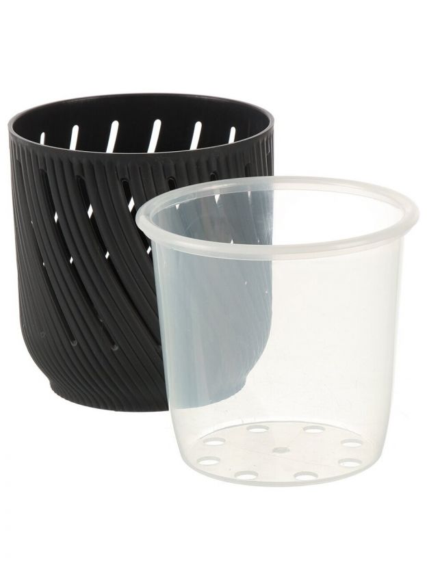 Кашпо пластиковое La Decoro, Fleurs, объемом 1.3 л, выполнено в стильном антрацитовом цвете, идеально впишется в любой интерьер и подчеркнет красоту комнатных растений. Компактные размеры 13.2х12.5 см позволяют разместить его даже в небольших пространствах. Кашпо легко очищается, устойчиво к влаге и долговечно.