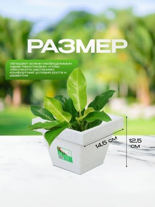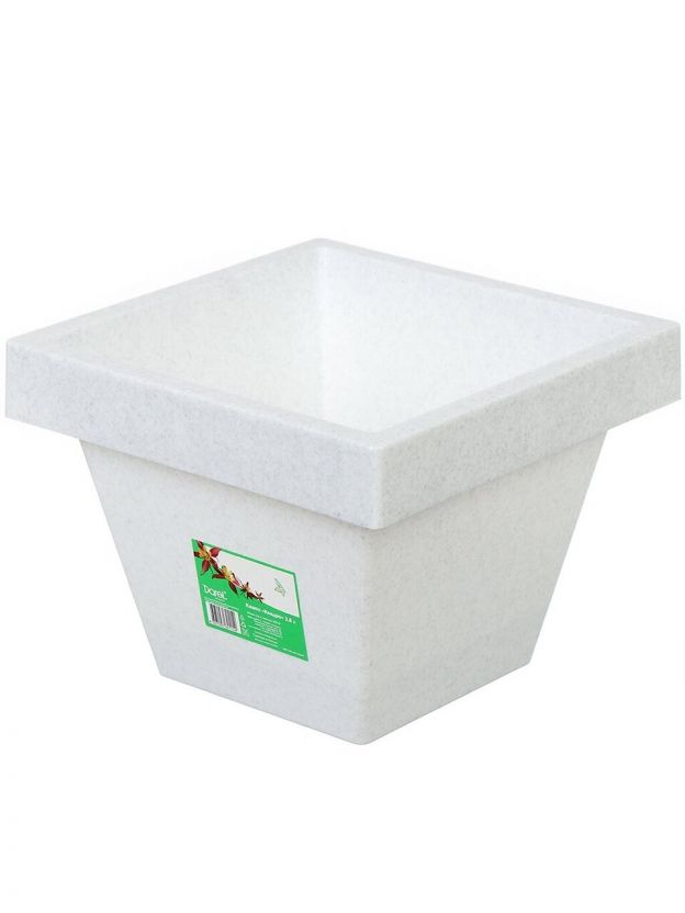 Кашпо пластик, 1.5 л, 14.5х12.5 см, белый гранит, Darel, Квадро, 50702